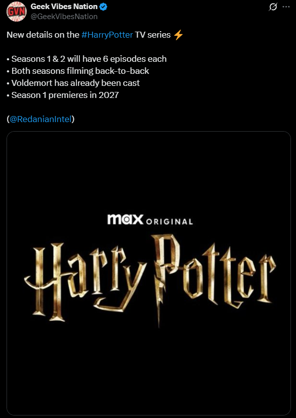 Οι νέες πληροφορίες λένε ότι οι δύο πρώτες σεζόν θα αποτελούνται από 6 επεισόδια αντίστοιχα (6+6), ενώ η παραγωγή της Warner Bros. έχει βρει ήδη τον ηθοποιό που θα παίξει τον Lord Voldemort. Προς το παρόν, δεν έχει κάνει κάποια ανακοίνωση και δεν γνωρίζουμε ποιος θα είναι.