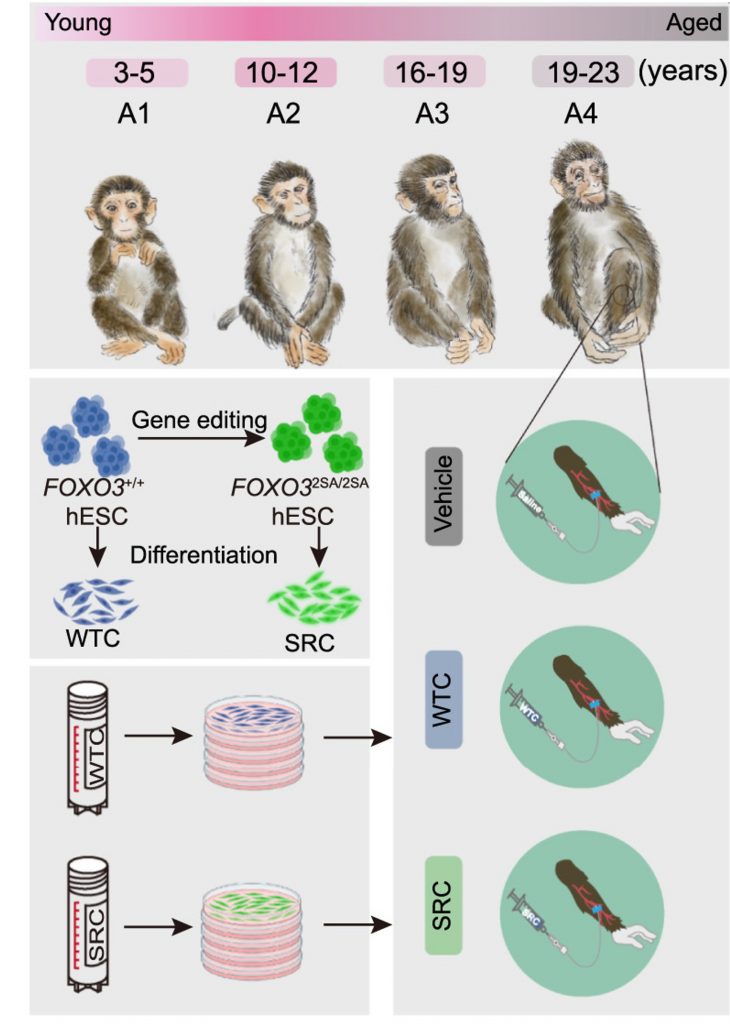 Τα λεγόμενα senescence-resistant stem cells (SRCs) δημιουργήθηκαν με ενίσχυση της πρωτεΐνης FoxO3, που σχετίζεται με τη μακροζωία. Έτσι, τα κύτταρα μπορούσαν να αντέξουν τις φλεγμονώδεις συνθήκες που συνοδεύουν τη γήρανση.